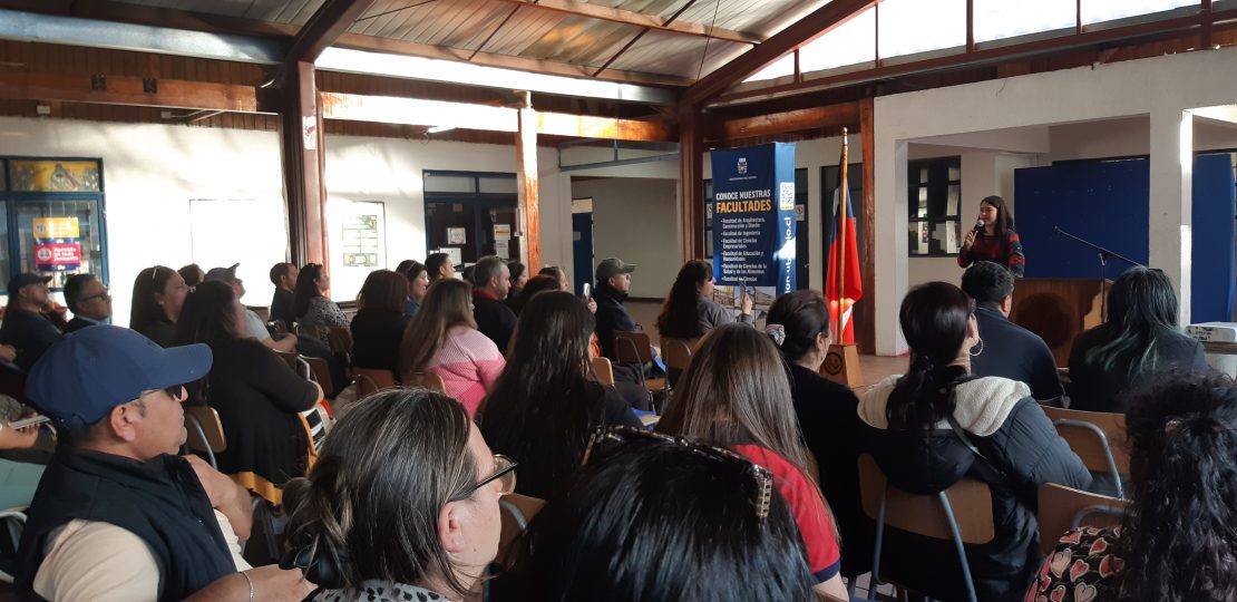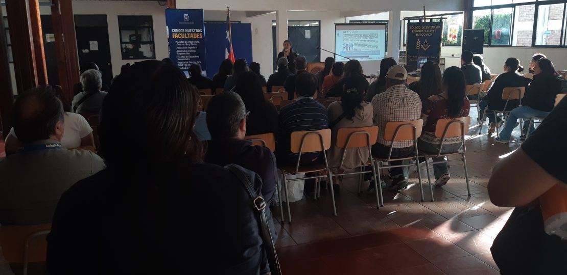 El Área de Financiamiento Estudiantil de la Universidad del Bío-Bío realizó una charla informativa dirigida a padres, madres y apoderados/as de estudiantes de cuarto medio en dicho establecimiento educacional de la comuna de Chillán, el pasado lunes 13 de octubre.
