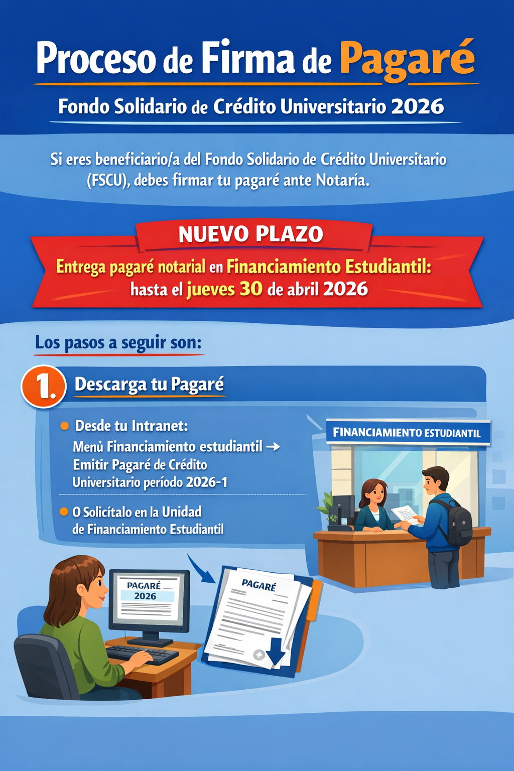 NUEVO PLAZO entrega pagaré notarial en Financiamiento Estudiantil : hasta el jueves 30 de abril 2026.