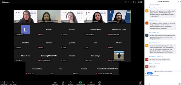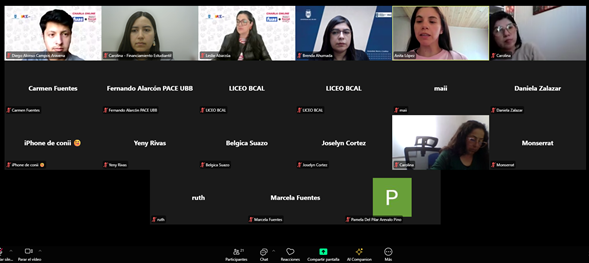 Los días lunes 6 y 13 de octubre, la Unidad de Financiamiento Estudiantil de la Universidad del Bío-Bío realizó charlas online dirigidas a estudiantes y apoderados de los 31 liceos pertenecientes a la red PACE UBB, presentes en las regiones de Ñuble y Biobío.